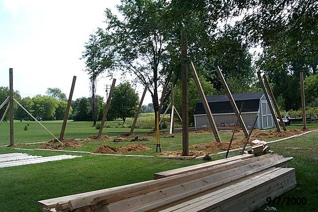 After cleaning the holes out , 5"x 5" treated sq. post are placed